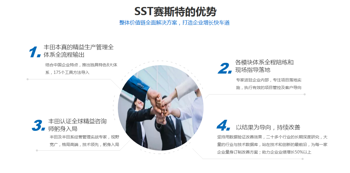 賽斯特集團(tuán)(SST)是豐田為背景的一家致力于企業(yè)管理咨詢、培訓(xùn)服務(wù)為主的國(guó)際化管理咨詢機(jī)構(gòu),依托于精益發(fā)源地豐田公司為背景的專家團(tuán)隊(duì),專業(yè)從事精益生產(chǎn)培訓(xùn)和咨詢服務(wù)的管理咨詢機(jī)構(gòu),中國(guó)本土唯一一家融合日本豐田,北京現(xiàn)代,韓國(guó)三星等專家為一體的咨詢機(jī)構(gòu)。旗下?lián)碛校禾旖蛸愃固仄髽I(yè)管理咨詢公司,天津眾益天成管理咨詢公司,北京冠群精益管理咨詢公司,天津精益智能咨詢有限公司等四家分支機(jī)構(gòu)。
